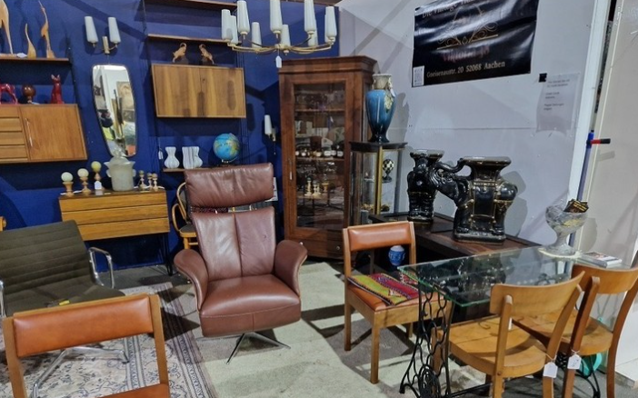 Mit etwa 70-80 Ausstellern ist dieser Markt der größte in Ostbelgien. Die Palette reicht von Vintage- und Retro-Ware über Trödel bis hin zu Antikmöbeln und Industriestyle -Tischen aus Eiche und Epoxy.